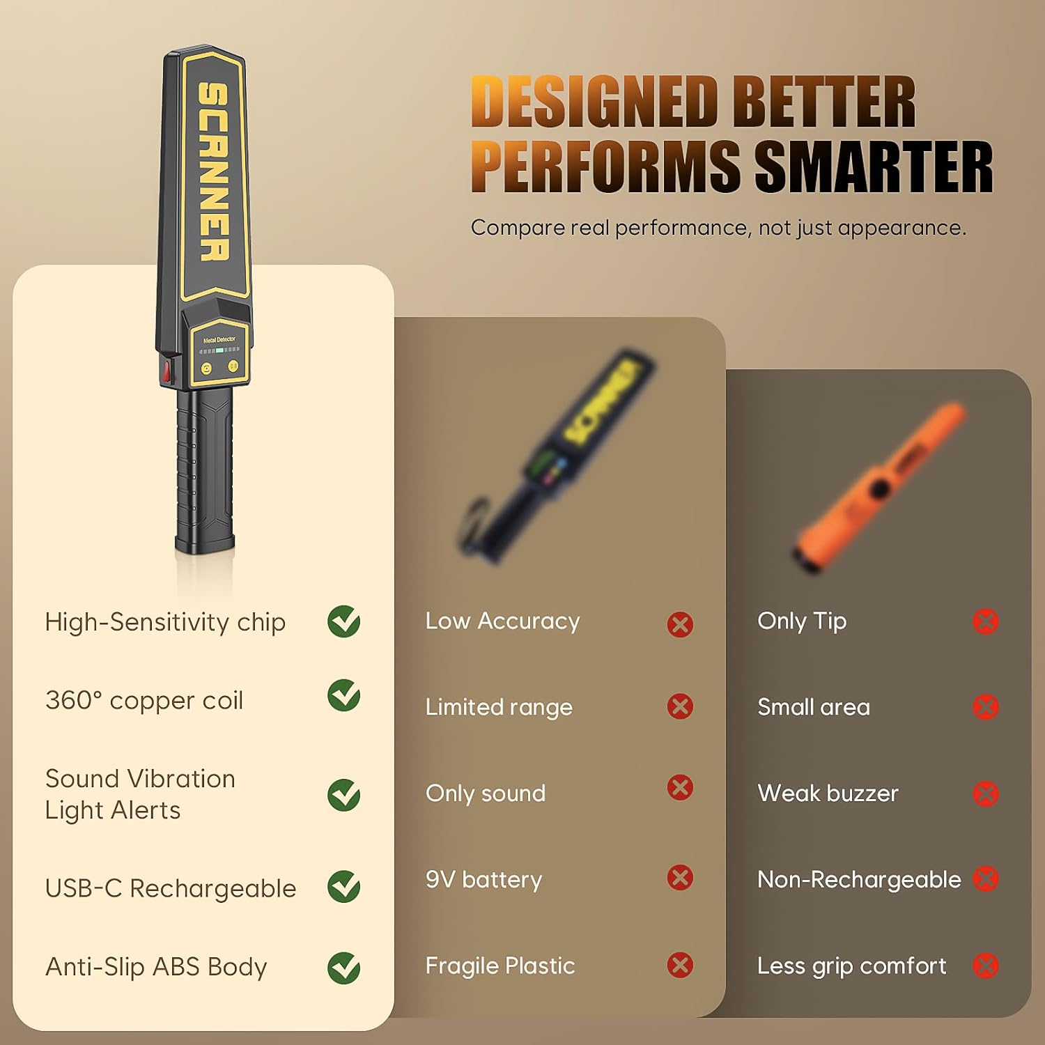 This high-sensitivity portable metal detector is designed to provide reliable metal detection services, with a yellow-black appearance, lightweight and portable, with high accuracy and high sensitivity, capable of quickly identifying metal objects.